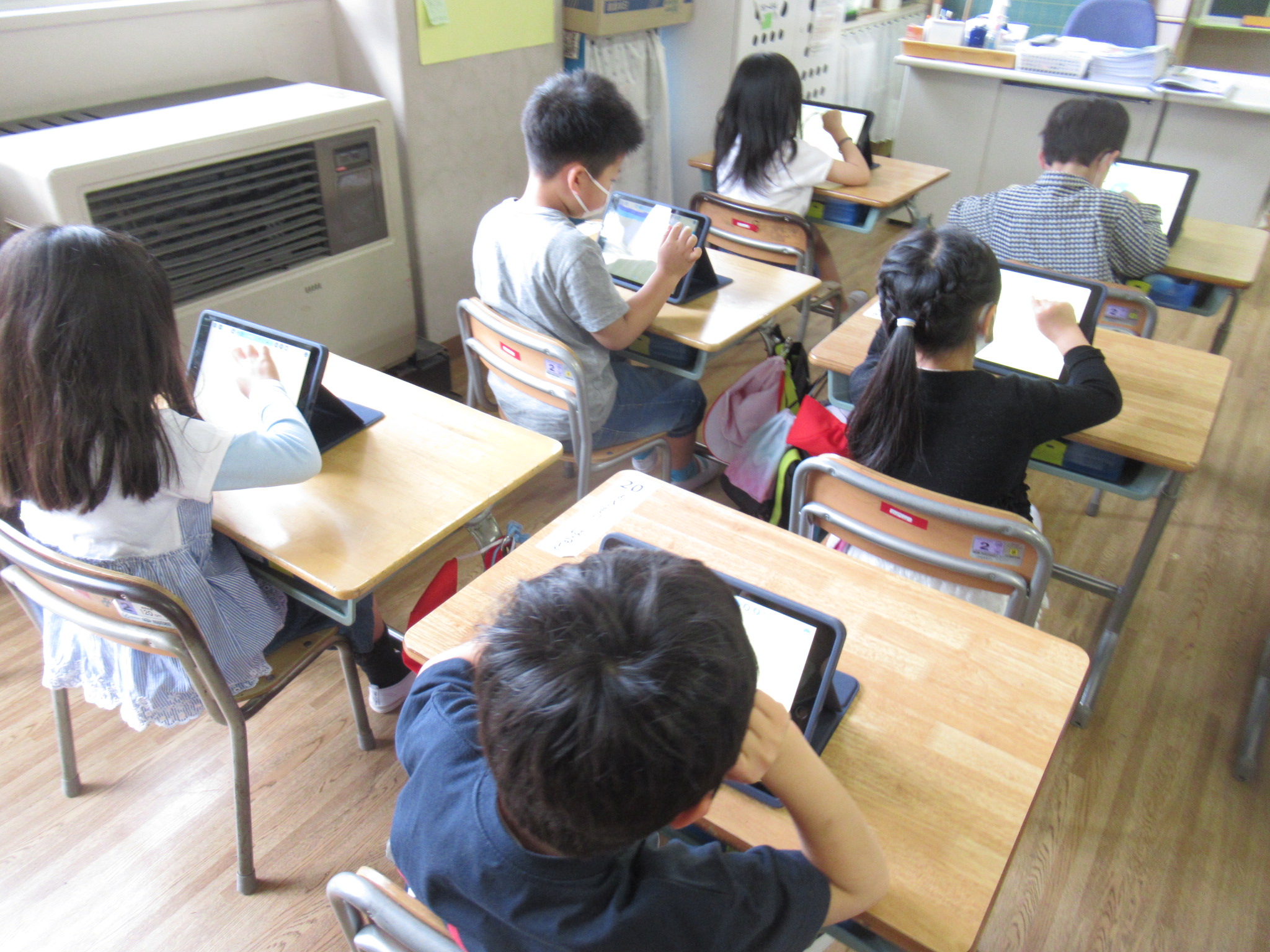 1年生タブレットを活用した授業 日付: 5月 27, 2021 1年生は今週タブレットを活用した授業を行いました。1つ目は「ロイロノート」,2つ目は生活科での「カメラ撮影」です。子どもたちは「ホームボタン」「フリック」「タップ」など操作に関する言葉と意味をしっかりと理解し,上手に操作や送信を行いました。撮影した写真をもとに,観察カードにまとめました。みんなの作品,とっても上手です!!